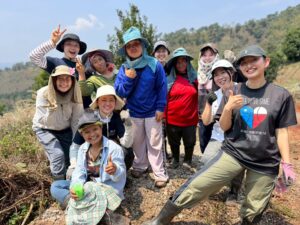 最初の1週間はオリエンテーションで、山岳民族について学んだり、ローカル小学校に行って、小学1.2.3年生と一緒に日本語レッスンや身体を動かすゲームをしたりしました。小学校での活動は13時から2時間程でした。2週間目は、アカ族が暮らすパーデンリーソー村にホームステイに行きました。道路補修のボランティアをしたり、食事の準備の手伝いをしたりしました。道路補修の活動は2日間で、各日4-5時間ほど行いました。