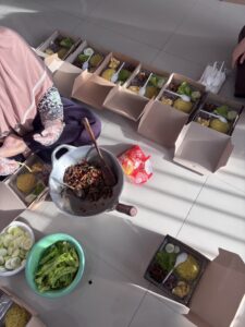 1回目は、日本文化研究会に所属する方々と主に日本文化について交流をしました。2回目は、断食明けに食べるお弁当作りとそれの配布を行いました。ラマダンプログラムならではの経験だったと思います。